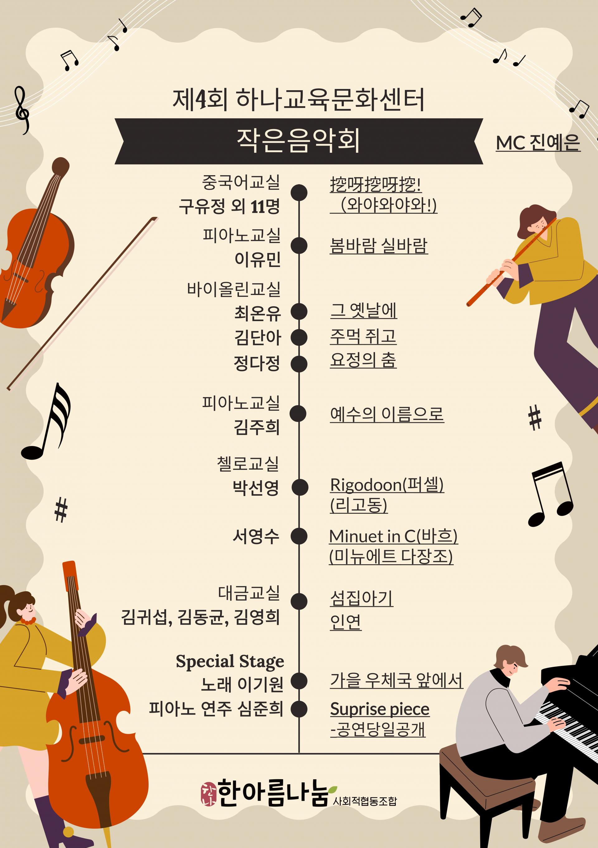 중국어교실부터 피아노, 바이올린, 첼로, 대금 연주까지